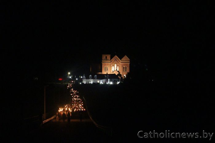 П асля працэсія вернікі разам з а. Андрэем Сідаровічам распачалі Крыжовы шлях вакол святыні.