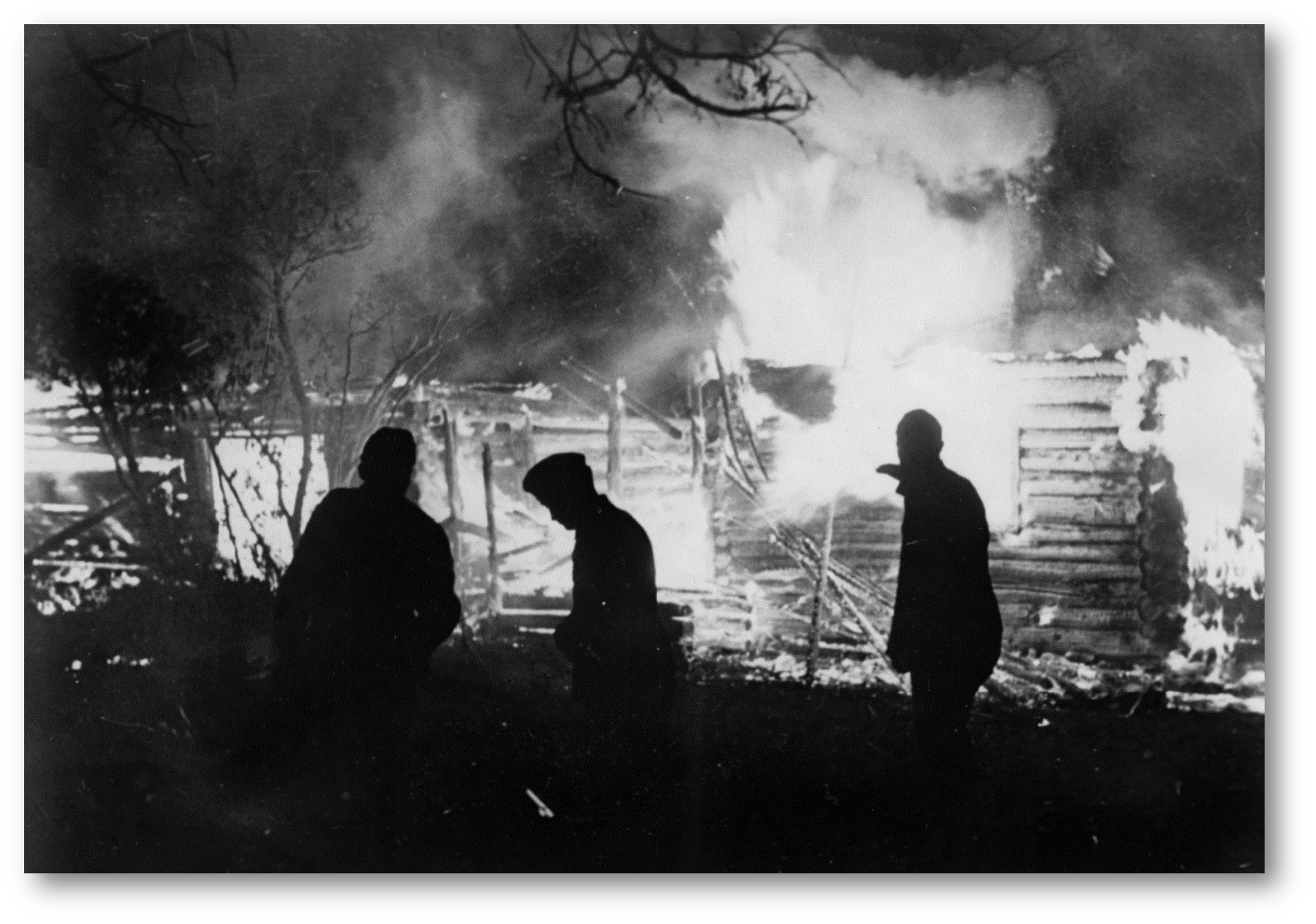 А ў касцёле працягвае гучаць малітва. Некалькі сведкаў успамінаюць, што як гэта ні дзіўна, але не было панікі. Людзей везлі ў адну з хат, замыкалі ў ёй, хату аблівалі бензінам і закідвалі гранатамі... Людзі, вядома ж, плакалі. Вядома, не ў адной маці заходзілася болем сэрца, калі яна думала, што будзе з ёй і яе дзецьмі. І ўсё ж, нягледзячы натакую безвыходнасць і немагчымасць хоць бы неяк паўплываць на лёс, у касцёле панавала атмасфера стрыманасці, як тады, калі складаецца Богу ахвяра і ўсе яе ўдзельнікі ўсведамляюць глыбінны сэнс таго, што адбываецца. Такая атмасфера, безумоўна, стварылася, дзякуючы прысутнасці святароў, іхнім словам падтрымкі, ахвярнай малітве. Напэўна, ніхто не асудзіў бы іх, калі б яны выратаваліся з гэтага жудаснага чакання смерці. Але яны свядома абралі гэты страшны лёс.
